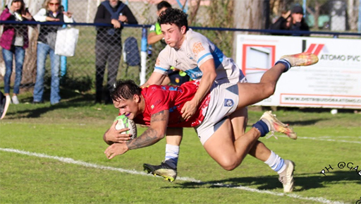 Juani Duarte se reintegró al plantel con las pilas recargadas. Su aporte en el tiempo que le tocó jugar fue de vital importancia. Aquí aparece superando la marca para llegar a apoyar su try. Foto: Gaby Iglesias