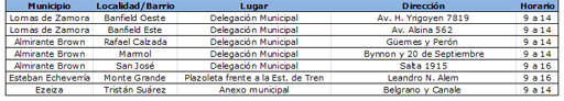 Para una mayor comodidad de los Usuarios y dentro del programaAySA en el Barrioen los municipios de Lomas de Zamora, Alte. Brown, Esteban Echeverría y Ezeiza se dispondrá de puestos de consulta según el siguiente cronograma: