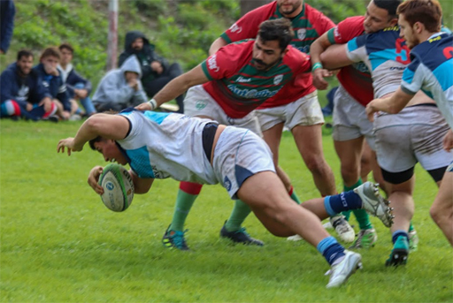 El juvenil hooker Lucas Marquina apoya su primer try en división superior en el día de su debut. Tengo presente la imagen de sus abuelos cuando traía a jugar a su padre. Foto: Gaby Iglesias