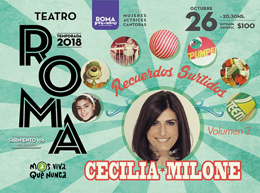 Este viernes 26 de octubre a las 20,30 horas, Cecilia Milone presenta en el Teatro Roma “Recuerdos surtidos”, un espectáculo que promete ser una demostración de sensibilidad, gracia y diversión a la hora de contar la intimidad de las letras que llenarán el alma de los espectadores.