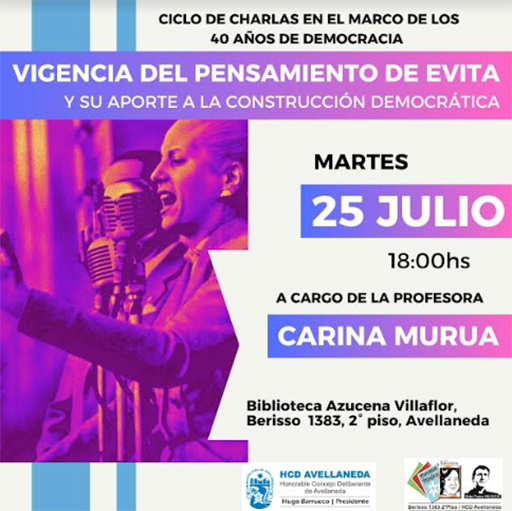 Charla “Vigencia del pensamiento de Evita y su aporte a la construcción democrática” 21 julio, 2023 / Agenda