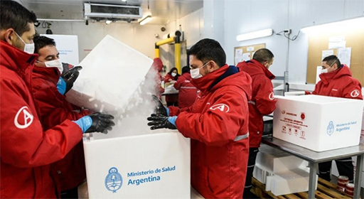 Con el arribo de hoy, el total de vacunas recibidas por Argentina asciende a 8.132.600.