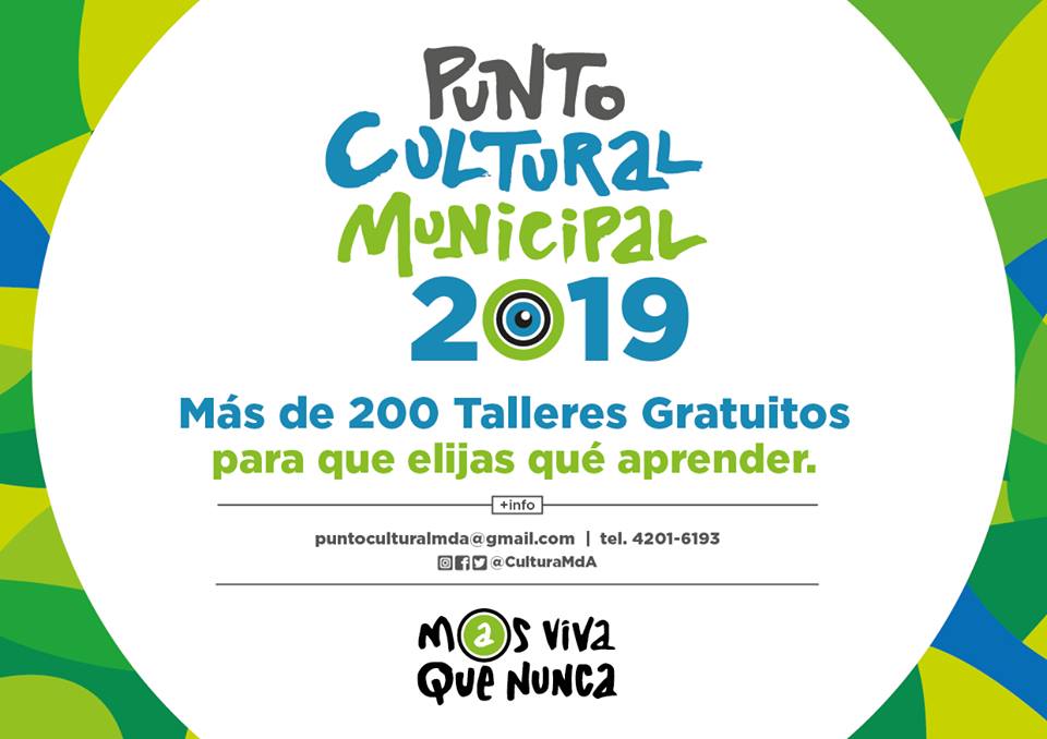 Comenzó la inscripción a los talleres culturales municipales 15 marzo, 2019 / Cultura Más información al teléfono 4201-6193, de 10 a 18 hs. O por mail a puntoculturalmda@gmail.com