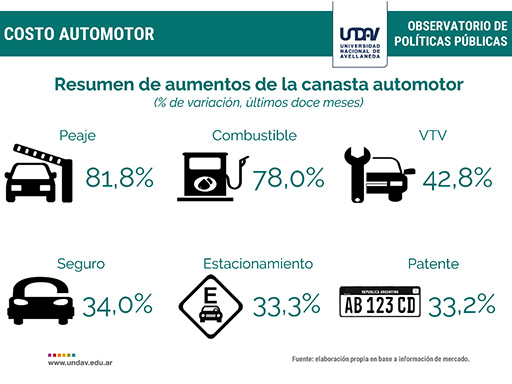 En sintonía, el informe ligado a la Carrera de Economía de la UNDAV que dirige Santiago Fraschina, remarca que “no sólo el valor de las unidades se vio incidido por el proceso inflacionario: todo el conjunto de rubros que hacen al mantenimiento de los vehículos también siguen verificando importantes correcciones de precios en los últimos meses”.