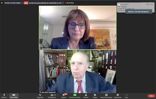 Este jueves se realizó, por la modalidad zoom, el encuentro denominado, “Diálogo rioplatense en tiempos de crisis”; una charla entre el ex Presidente de Uruguay, Julio María Sanguinetti, y la Presidenta del PRO Nacional, Patricia Bullrich.