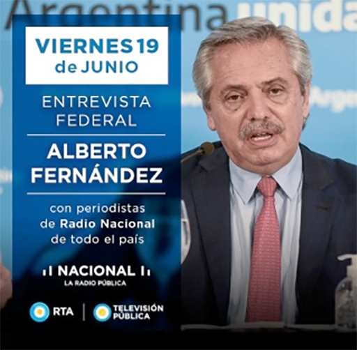 El presidente de la Nación Alberto Fernández brindará una entrevista simultánea, por primera vez en la historia, con once periodistas de las emisoras de Radio Nacional y RAE, con transmisión en vivo por Televisión Pública.