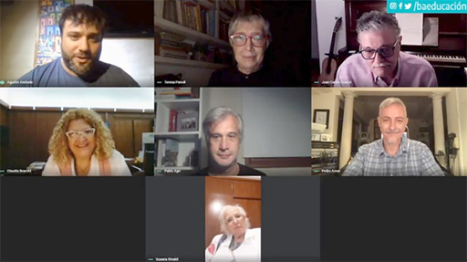Al comenzar el conversatorio, Claudia Bracchi expresó que “cuando se suspendieron los encuentros presenciales, profesores y estudiantes hicieron un gran esfuerzo para que la escuela continúe a través de la continuidad pedagógica. En este año inédito y excepcional pudimos seguir aprendiendo y enseñando. Las y los docentes del Programa Coros y Orquestas se acercaron a los hogares de las y los estudiantes para afinar sus instrumentos. Este programa tiene una identidad, por eso celebramos hoy sus 15 años de existencia”.