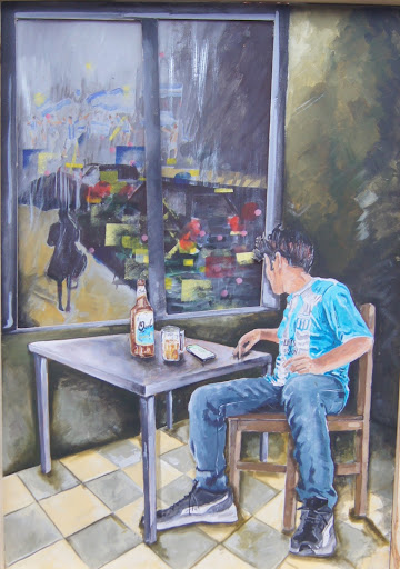 Personajes captados en sus quehaceres, “tomados en préstamo”, personajes que se me figuran esenciales, que son parte de mi formación: Spilimbergo, clásico y moderno; Renoir, siempre presente; El Bosco; Van Gogh, con su pintura temprana y oscura; Tex Avery y su irreverencia; Aristarain y el cine negro.