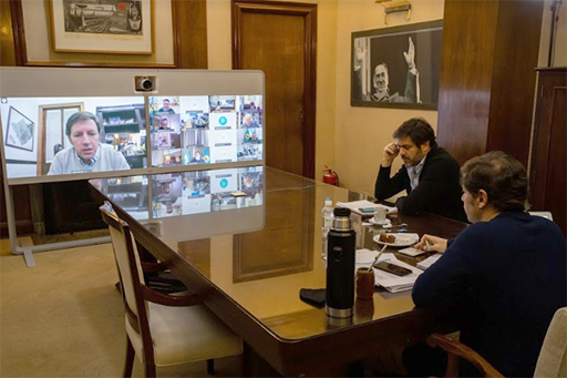 ![]() Estuvo acompañado por el jefe de Gabinete, Carlos Bianco, y participaron en forma remota el ministro de Producción, Ciencia e Innovación Tecnológica, Augusto Costa; el ministro de Seguridad, Sergio Berni; la ministra de Gobierno, Teresa García; el ministro de Desarrollo de la Comunidad, Andrés Larroque; el ministro de Salud, Daniel Gollan y su viceministro, Nicolás Kreplak.