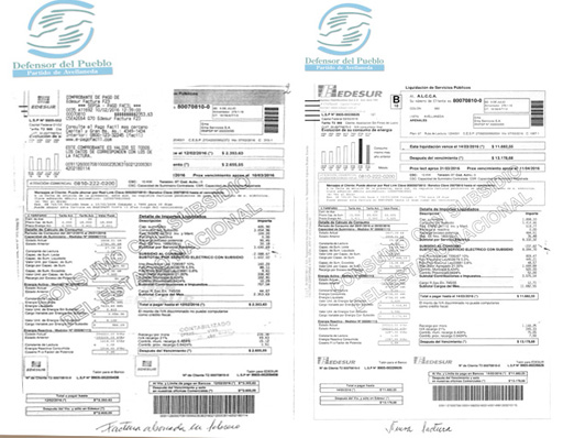 «De acuerdo a la documentación aportada por la Institución reclamante, la factura de la Empresa EDESUR correspondiente al periodo de consumo del 30/12/2115 al 29/01/2016 arroja el importe de $ 2.353,63. La correspondiente al periodo 29/01/2016 al 29/02/2016 asciende a la suma de $ 11.682,55.-. Entendiendo esta Defensoria, que si bien se enmarca dentro del aumento tarifario expresado a través del Decreto y las resoluciones del Poder Ejecutivo Nacional, y puestas en conocimiento a esta Defensoria por el Ente Nacional Regulador de Electricidad a través de la Resolución ENRE 0001/2016, Boletín Oficial Nº 33.308/2016. Las mismas no contemplan la infinidad de casos que guardan paralelismo como el que hoy nos ocupa» – señalan desde la Defensoría del Pueblo.