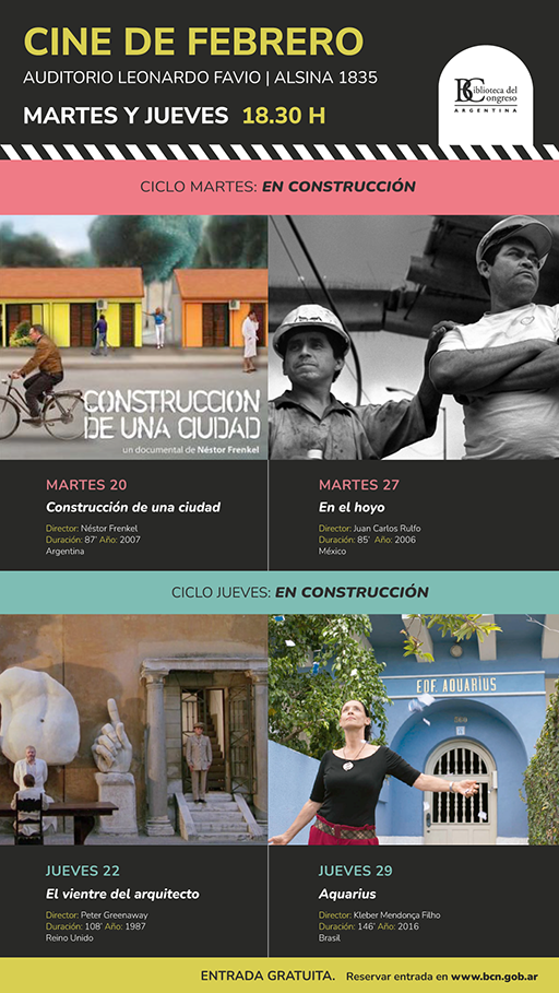 El ciclo denominado “En construcción” prevé la proyección de 4 películas, los martes y jueves desde las 18.30 horas. El programa es el siguiente: