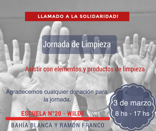 La Escuela Nº 20 de Wilde convoca a participar de una jornada de limpieza