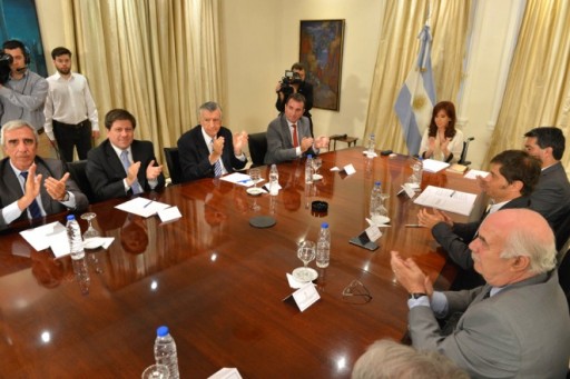 La presidenta, que presidió el acto en Olivos, estuvo acompañada por el Jefe de Gabinete, Jorge Capitanich; los ministros de Economía, Axel Kicillof y de Agricultura, Carlos Casamiquela, además del secretario de Comercio, Augusto Costa y de los secretarios General de la Presidencia, Aníbal Fernández, y de Legal y Técnica, Carlos Zannini.