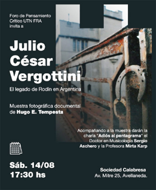 El Foro de Pensamiento Crítico UTN FRA invita a la muestra fotográfica documental de Hugo E. Tempesta “Julio César Vergottini. El legado de Rodin en Argentina”.