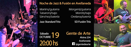 Participará Jazz Standard Trío con Martins (guitarra), Tabaroni (bajo), Sánchez (batería) y SD Fusión Trío integrado por Morganti (guitarra), Moretti (bajo) y Orellana (batería).