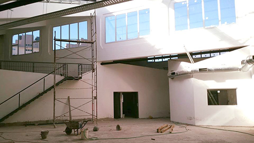 La obra se prevé en dos etapas constructivas: en la primera se realizan tareas de acondicionamiento, nivelación de toda la superficie de la planta alta, colocación de carpinterías externas, elevación de los muros interiores, cerramientos laterales y cubiertas, y entrepisos livianos; tareas previas y presentaciones de las instalaciones generales como sanitarias, eléctricas, y gas; reparación de mampostería perimetral y revoques, e impermeabilización de todo el edificio