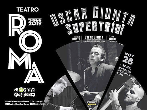 En esta oportunidad , y en el contexto de un extenso tour nacional e internacional, Giunta y su trió llegan al escenario mayor del Teatro Roma para presentar en exclusiva el nuevo álbum solista de Giunta, “Apaláp” grabado en los Bacque Recording Studios, New York City, en el marco del ultimo tour que el Oscar Giunta Supertrio! realizó con gran suceso por USA durante el último mes de abril.