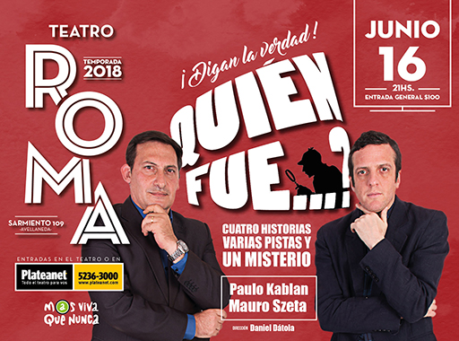 Dos de los más prestigiosos periodistas de policiales, relatan los detalles menos conocidos de cuatro resonantes y recordados casos (Nora Dalmasso, Angeles Rawson, Ricardo Barreda y María Marta Garcia Belsunce), al tiempo que, en una permanente interacción con el público, irán dando pistas de un quinto caso que los presentes en la sala deberán revelar. Anécdotas, pormenores, el detrás de la escena de los crímenes y la respuesta a una pregunta que muchos aún se siguen haciendo: Quién fue…?