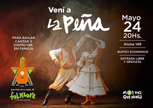 El Instituto Municipal de Folklore y Artesanías Argentinas -IMFAA- celebra la Revolución de Mayo con una gran Peña popular e invita a ser parte de esta celebración para bailar, cantar y disfrutar en familia. Se llevará a cabo el viernes 24 de mayo a partir de las 20. Sólo hay que retirar con anterioridad la entrada gratuita en Alsina 149, del centro de nuestra ciudad.