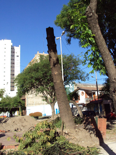 Es un despropósito, si un particular poda es multado, si la municipalidad tala, parece estar bien…. No creo que los bomberos voluntarios se sientan felices con las depredaciones hechas en su plaza ni que el Intendente pueda felicitar a su subalterno, responsable de la ecología del Partido de Avellaneda.