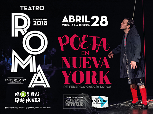 La pieza Poeta en Nueva York es un recorrido por el poemario y la conferencia que Federico García Lorca dio para presentarlo publicamente en 1932 en la Residencia de Señoritas de Madrid, relatando su experiencia neoyorquina. Es un viaje poético que cuestiona, desde una perspectiva en que prevalece una crueldad terrible, oscura y perturbadora, los valores y la doble moral que predominan en el sistema económico y social que impera en el mundo.