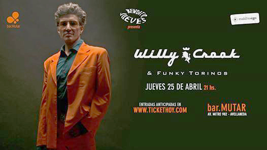 Bendito Jueves presenta Willy Crook & Funky Torinos en bar Mutar este jueves 25 de abril a las  21 hs,  en Av Mitre 982 1er piso, Avellaneda.