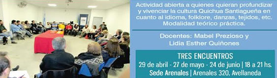 El objetivo del seminario es difundir y visibilizar el idioma y la cultura quichua Santiagueña a través del lenguaje en sus diferentes aspectos: oral, escrito, corporal, artístico, etc. La actividad está destinada a toda persona interesada en la temática y que quieran profundizar y vivenciar la cultura quichua Santiagueña en cuanto al idioma, folklore, danzas, tejidos, etc. La participación es gratuita y no requiere contar con conocimientos previos.