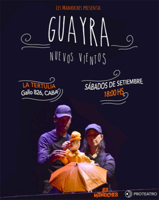 “Guayra..” es un espectáculo que a través de imágenes poéticas transcurren las historias que atraviesan lo más humano: los desencuentros, la imaginación y la creación, la naturaleza y sus mensajes; Historias que por sobre todas las cosas intentan homenajear a uno de los maestros más importantes que tiene la Argentina en la dramaturgia para títeres: Gabriel “Guaira” Castilla.