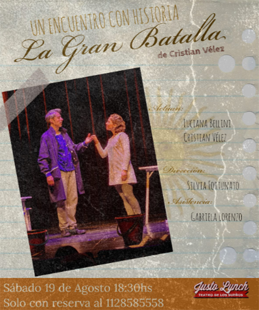 Sábado 19 de agosto a las 18.30hs en Bragado 5709 (esquina Polonia, Wilde) Centro Cultural Justo Lynch – Teatro de los sueños.
