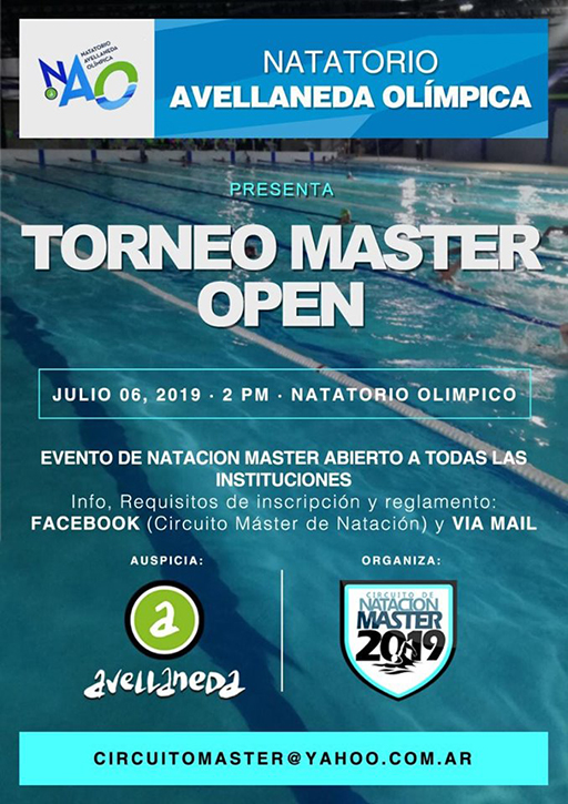 Para información, requisitos de inscripción y reglamento: Facebook (Circuito Máster de natación) y via mail / circuitomaster@yahoo.com.ar