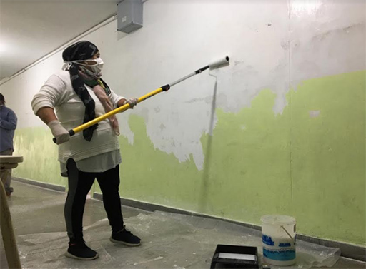 “Arrancamos en marzo haciendo una primera parte de lijado y limpieza de la escuela. Después, por el tema de la pandemia tuvimos que parar y ahora retomamos nuevamente para dar inicio a la fase de pintura de paredes. Queremos terminar el trabajo para que cuando se retomen las clases, los alumnos puedan disfrutar de las instalaciones”, explica Gisela Duarte, trabajadora de la Economía Popular que realiza tareas en la Escuela N°26 de Lobos.