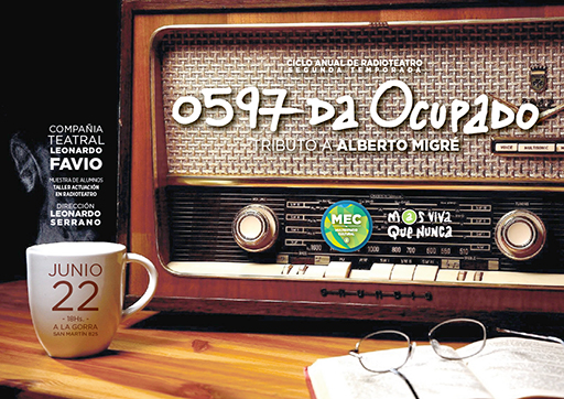 La Compañía Teatral Leonardo Favio, con dirección de Leonardo Serrano, presentará este sábado 22 de junio a las 18 horas, en el MEC – Multiespacio Cultural ubicado en la calle San Martín 825 de Avellaneda centro, el Tributo a Alberto Migré: radioteatro “0597 da ocupado”. A la gorra.