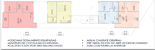 En cuanto a las unidades habitacionales, contarán con cocinas totalmente equipadas con muebles bajo mesada y artefacto de cocina de primera marca, calefacción individual de tiro balanceado, aberturas de aluminio, agua caliente central y amplios balcones. Además, tendrá un ingreso por tarjeta magnética y habrá un salón de usos múltiples con cocina y baño en el décimo piso y un solarium con deck y duchas en la terraza.