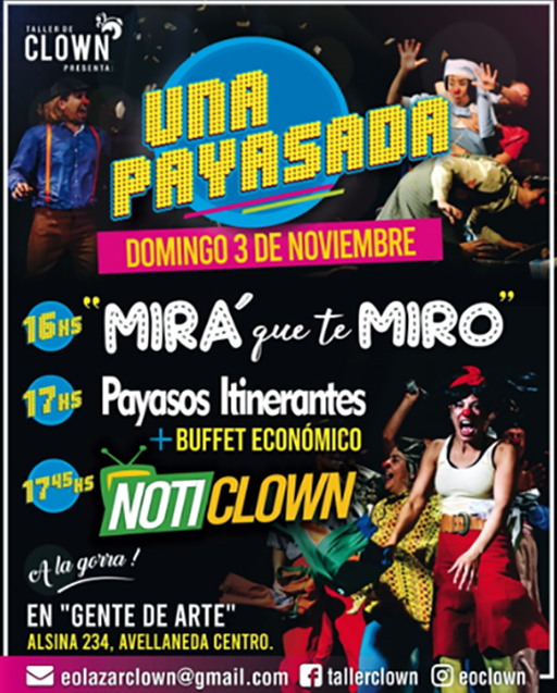 El domingo 3 de noviembre, Taller de Clown presenta “Una Payasada” en Gente de Arte de Avellaneda -Alsina 234-.